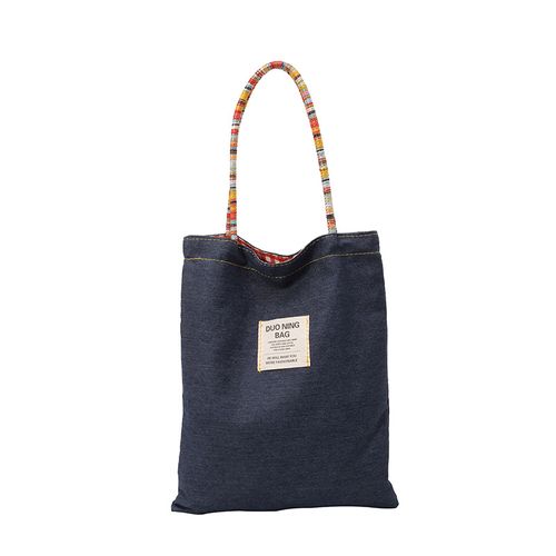 Bag Lady 2026 New Vintage Check Denim Canvas Bag - Versatile Commute Tote Bag with Two Faces and Single Shoulder Strap