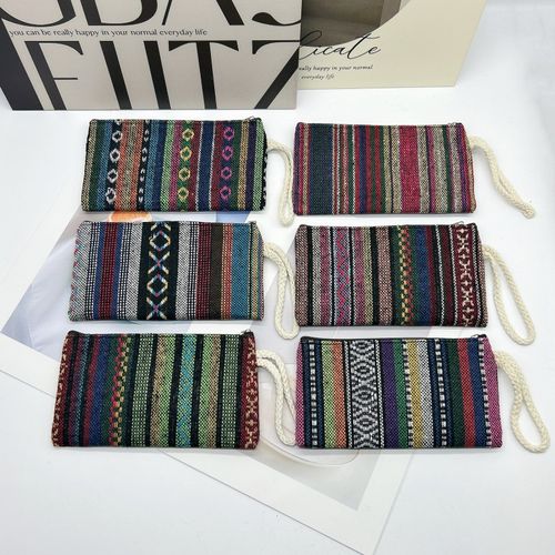 Retro ethnic style mobile phone bag, women's small wallet, wrist bag, simple hand-held striped fabric bag. Manufacturer's wholesale.